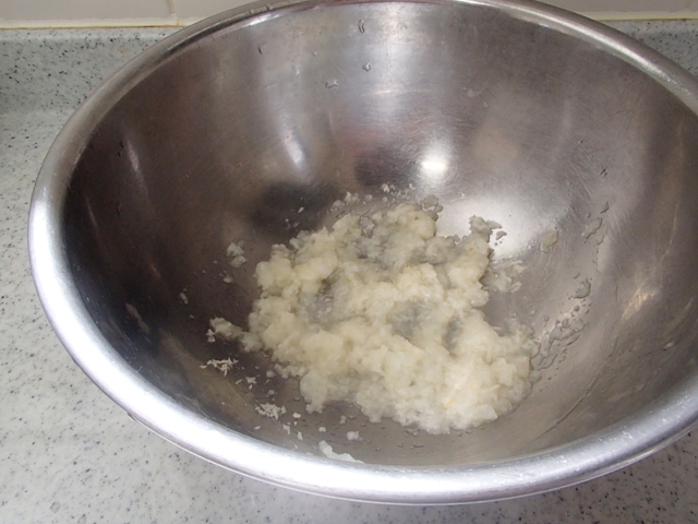 1.パン粉と玉ねぎすりおろしを合わせてふやかす。