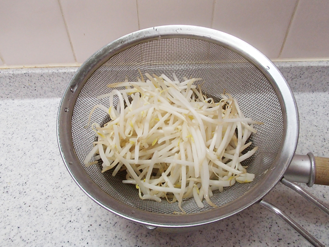 1.もやしは熱湯でさっと茹でる。ざるにあげてそのまま冷ます。