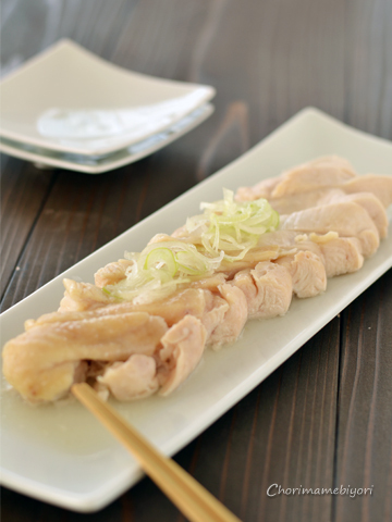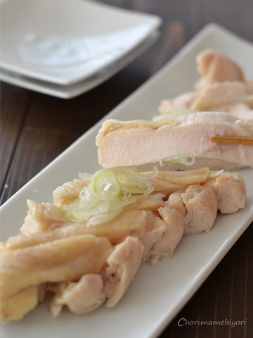 我が家の定番「塩鶏」。鶏むね肉が驚くほどやわらかく、ジューシーに仕上がります。このシンプルさ、やみつきです。煮汁はスープにしたり、出汁としてもお使いいただけます。