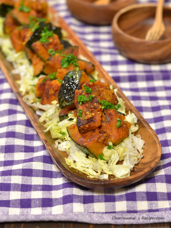 帰りの電車で考えたかぼちゃの温かくてもOKなサラダです~。