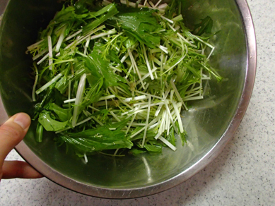・水菜は根元を落とし、長さ4cmくらいに切る。