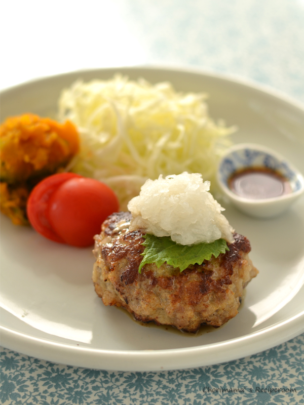 4.ふっくらとし、中央に弾力を感じたら焼き上がり。大葉とおろしポン酢をのせていただく。