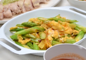 簡単スイートチリソース・アスパラエッグ炒め