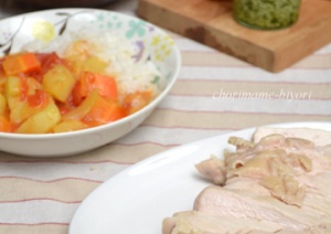 塩鶏、冷やし塩酢かぼちゃはサラダのトッピングに。