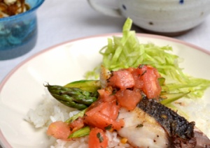ナンプラートマトバジルソースライス・真鯛のソテー