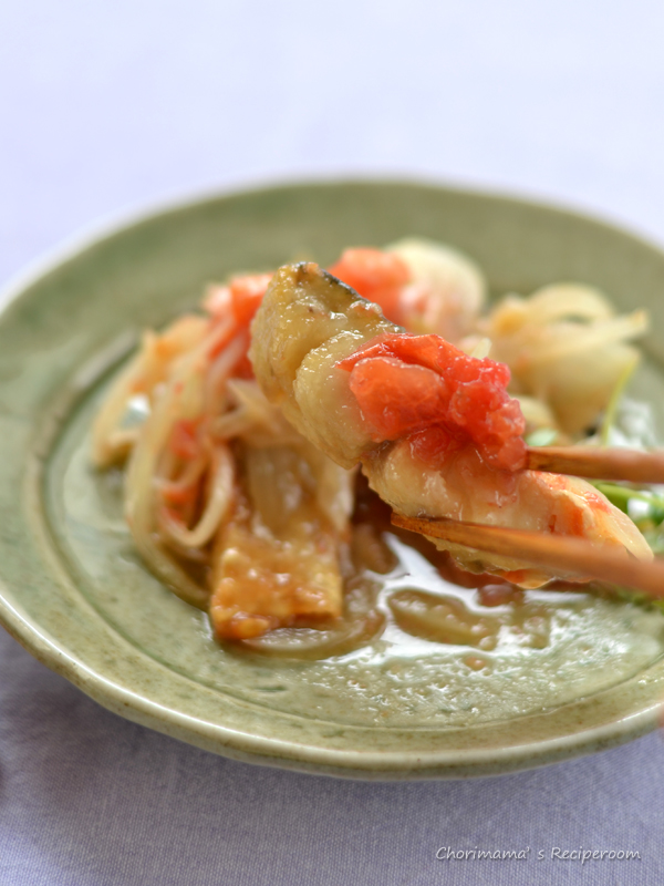 夏野菜のトマトを使って塩としょうがでいただく南蛮漬けです!