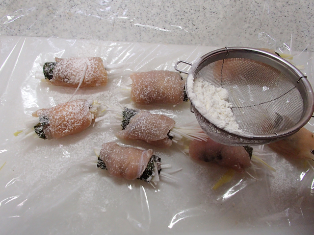 薄力粉はしっかりとまぶすと、綺麗に焼きあがります。