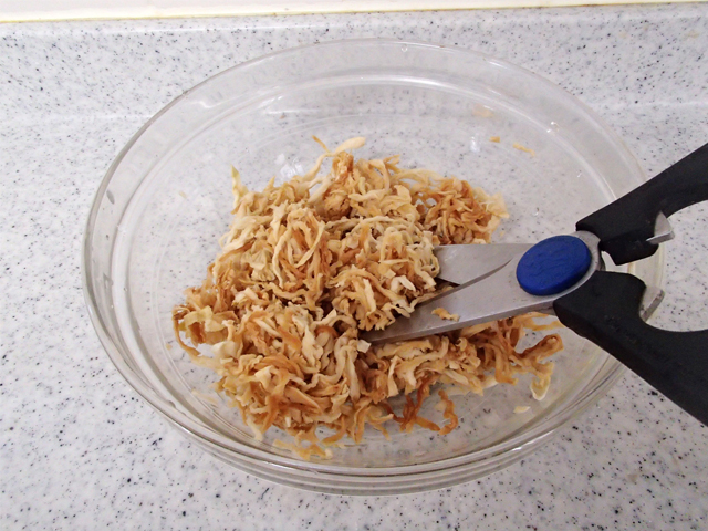 ・切り干し大根は、たっぷりの水でほぐすように洗い、水気をかるくきる。キッチンバサミで短く切る。