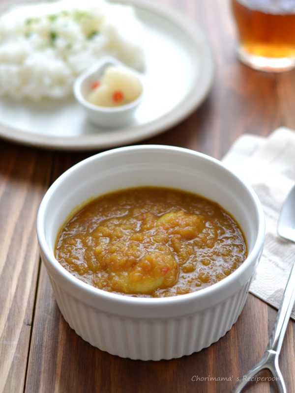 海老が大好きなんで、えびのカレーをすることって多いんですよ~♪豆乳仕立てもおいしいんですよ。^^