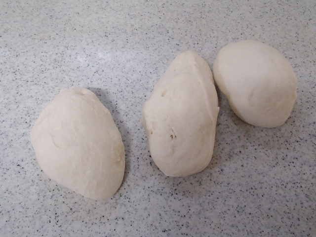 5.ラップなどをして乾燥させないようにし、10分ベンチタイムをとる。3分割にして丸め直す。