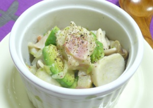 お野菜、バター、ベーコン入れてレンチン煮込み