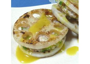 今回は豚のひき肉をレンコンでサンドしてぇ~♪