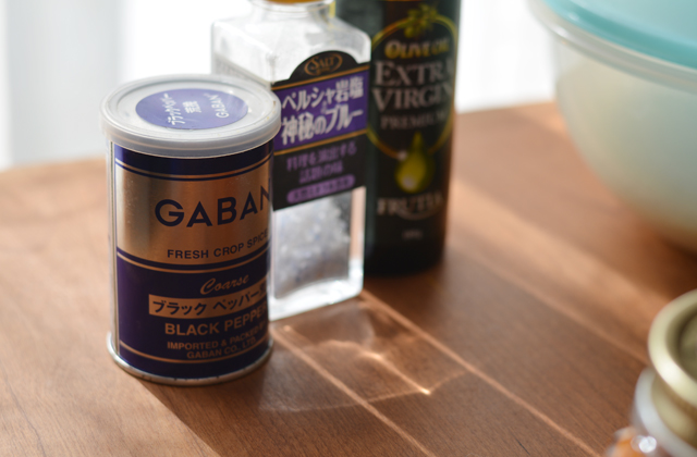 オリーブ油と、GABANブラックペパー荒挽。