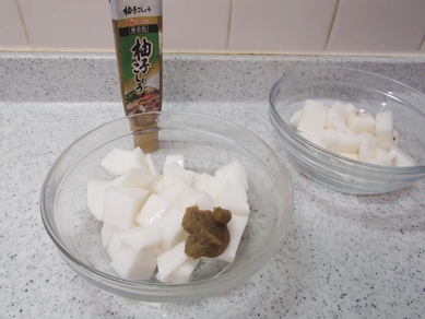 さいの目に切った長いもを柚子胡椒と和えて作る方法です。^^