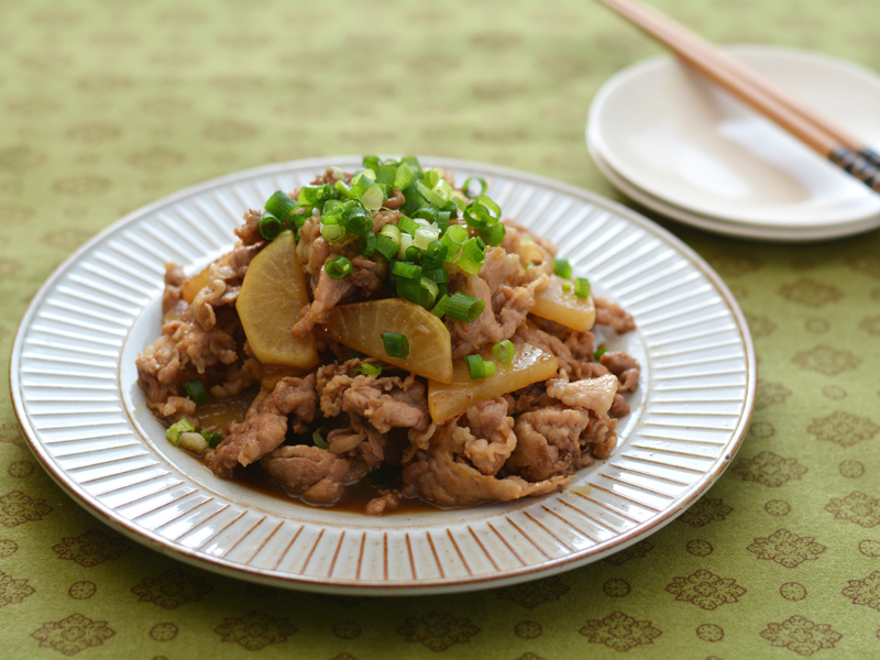 旬の大根をたっぷり使った簡単炒め物です。大根と相性のよい豚肉を使い、にんにくの風味でコクをきかせ、「純白ごま油」に合うシンプルな味に仕上げます。