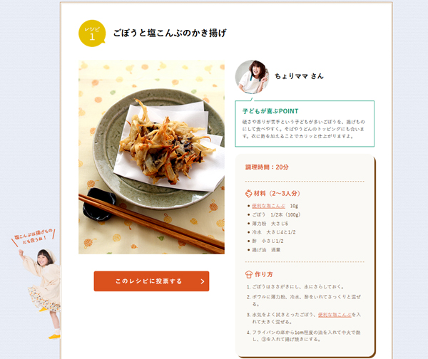 Recipe【ごぼうと塩こんぶのかき揚げ】