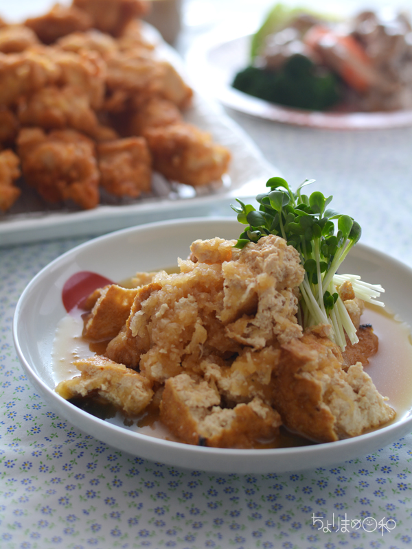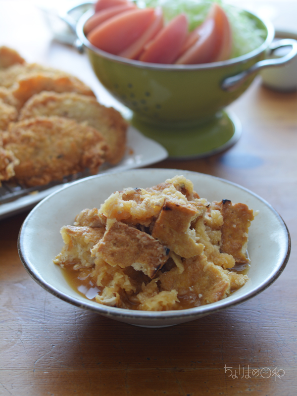 今日の小さなコツは、厚揚げは「あえて」手でちぎりましょう。(あえてだよ?w)