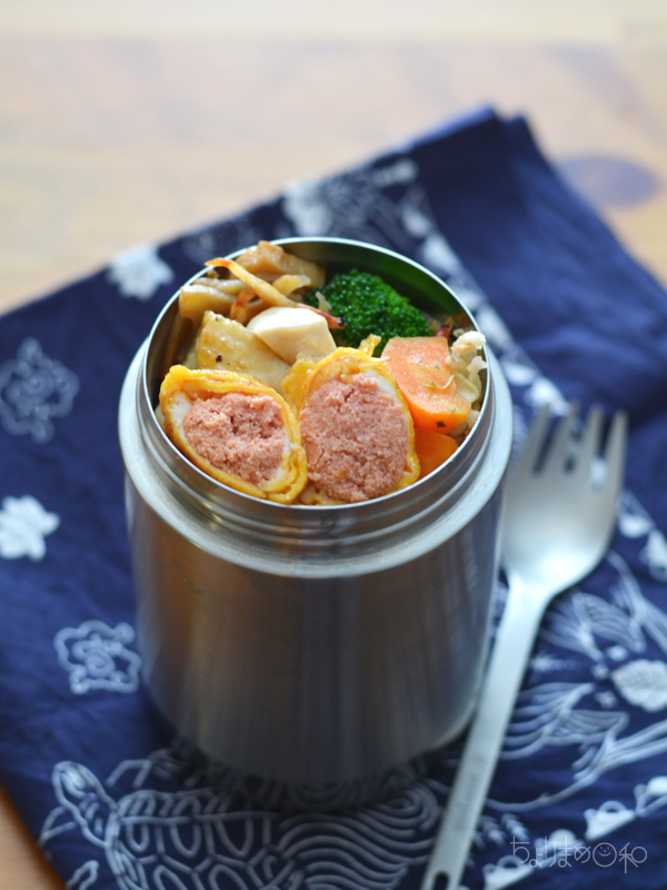 以前お弁当で作った「トマトケチャップ+めんつゆ+ねりからし」の味付けのレシピおこし。