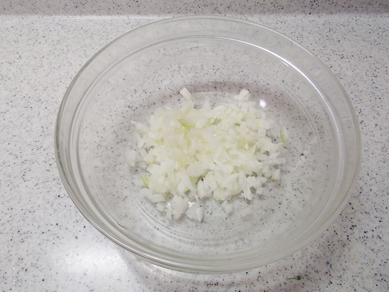 1.耐熱ボウルに玉ねぎを入れ、電子レンジで1分30秒加熱する。